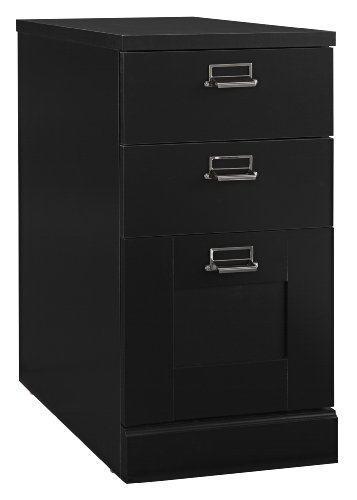 This furniture arrives mostly assembled. 14341 Features: Home Office Two Drawer letter size file Full high sided file drawers construction eliminates the need for hanging file folder frames Nylon Roller suspension Factory installed locks 18" Deep drawers Finish: Black Dimensions: 14.24"(W) x 18"(D) x 24.5"(H)