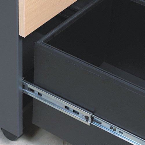 - Mechanical interlock allows only one drawer to open at a time to inhibit tipping